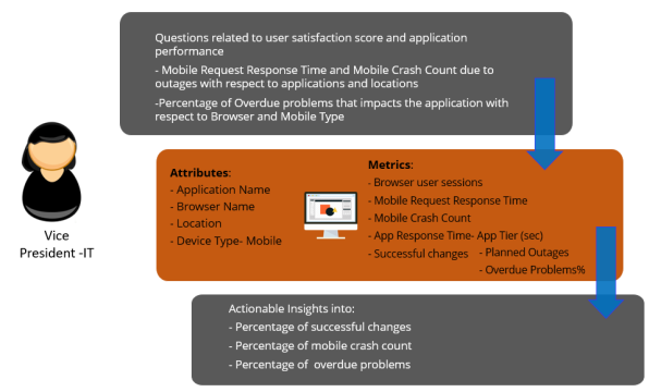 Janet is a Vice President of IT operations. She wants to understand the overall health of applications across various performance vectors, such as incident and problem volumes, change success rates, outage, and downtime durations, failed and stalled transactions, and user performance of key transactions, as it gives a composite picture of application operational health.